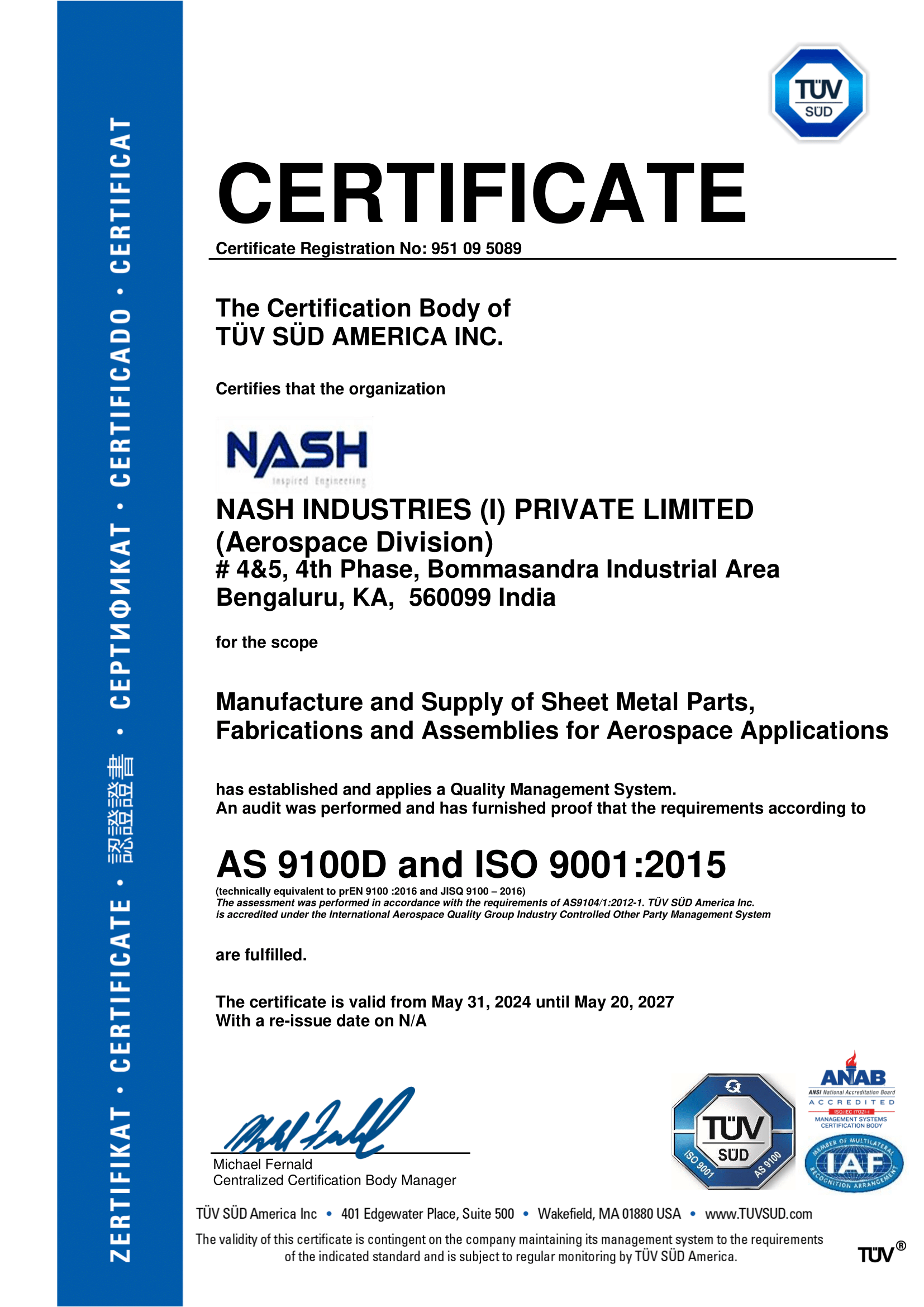 AS9100 certificate - Nash BIA Unit-1
