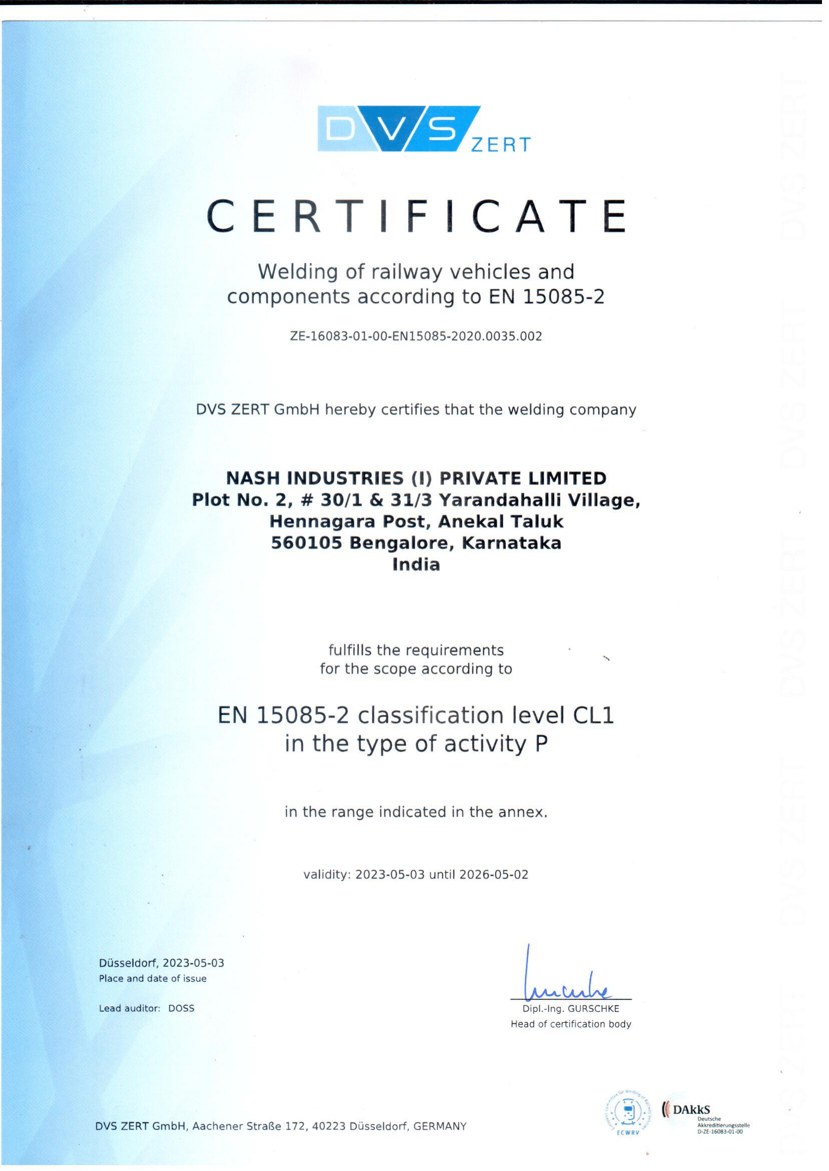 EN 15085-2 Certificate - Nash BIA Unit-4