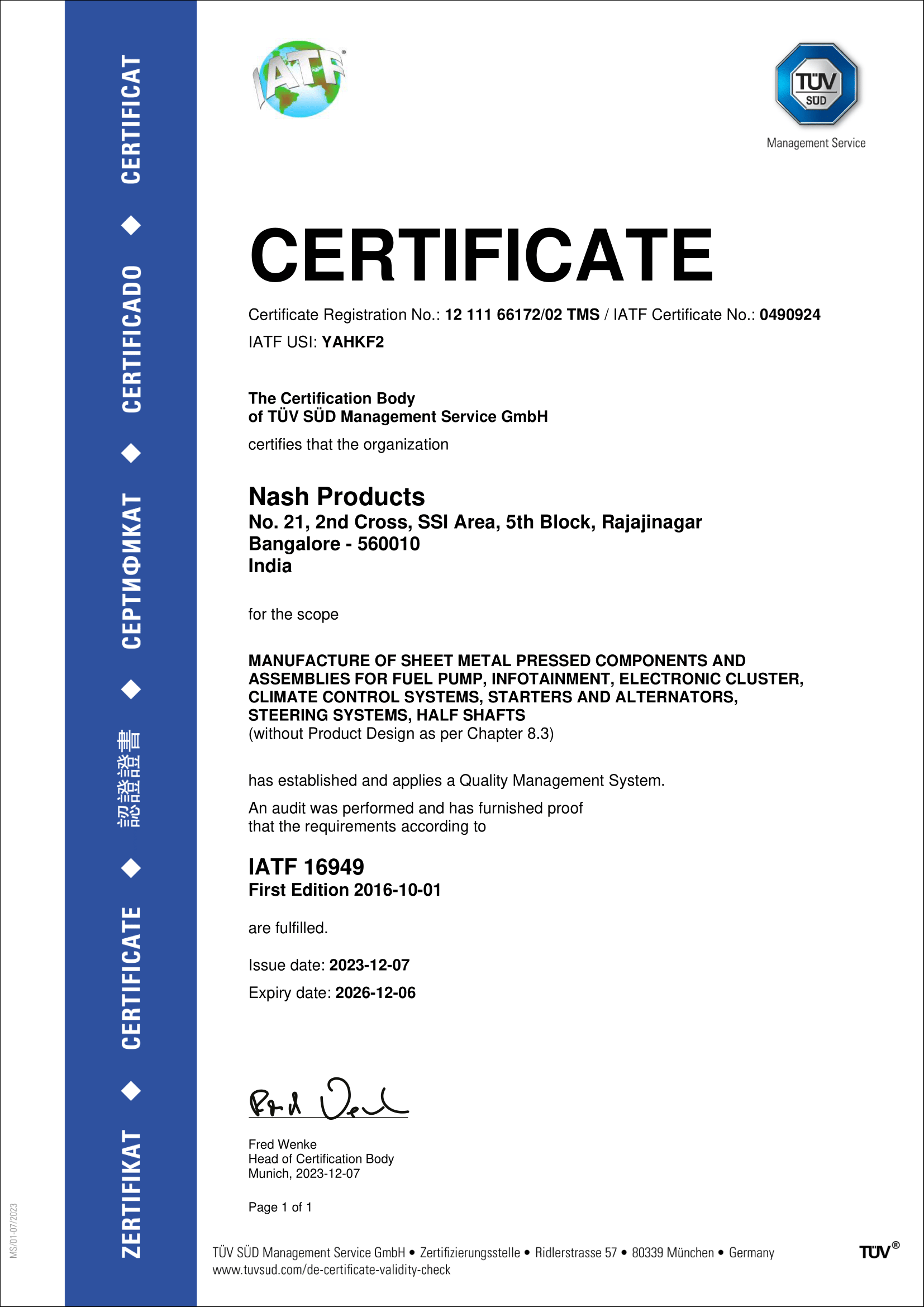 IATF16949. certificate -Nash Nagaruru