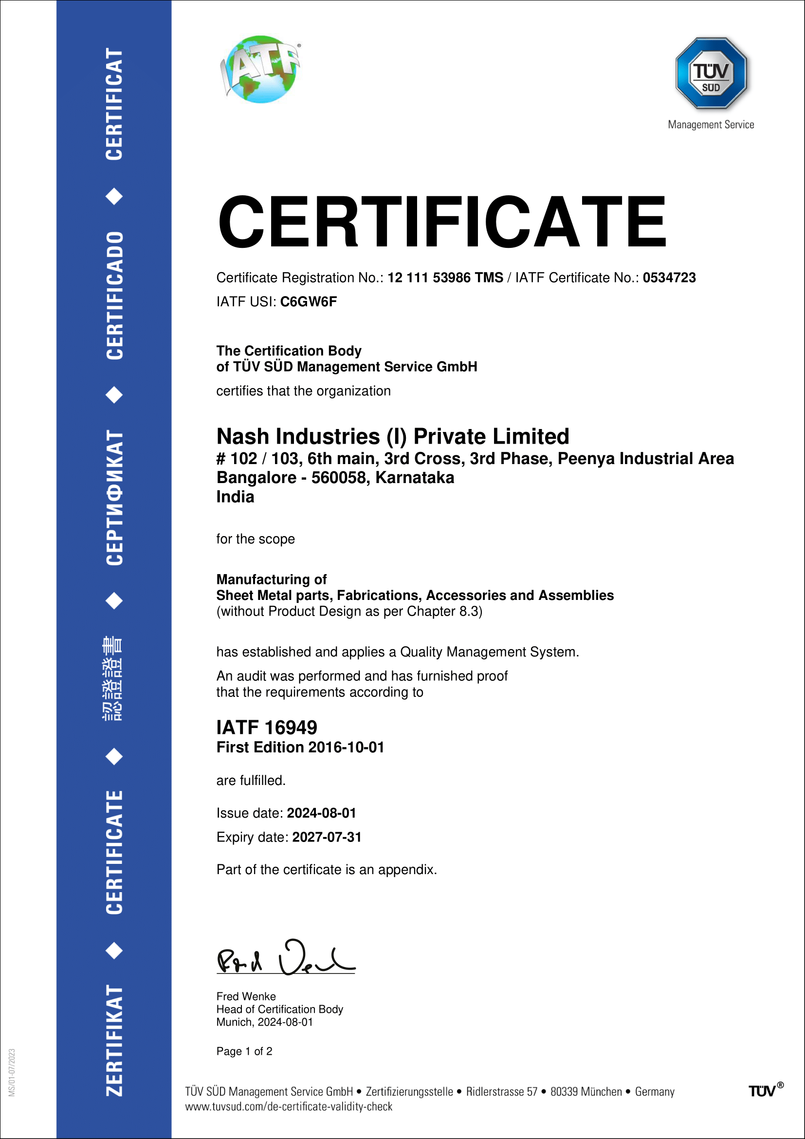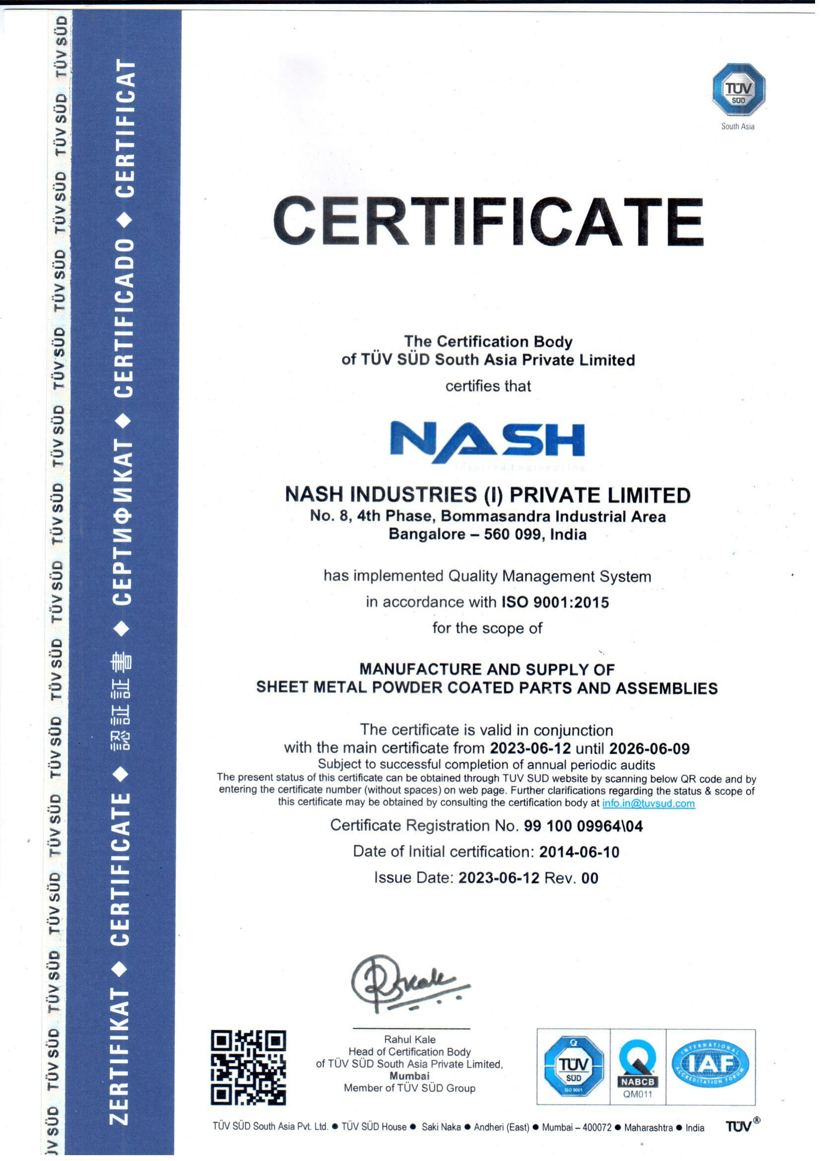 IATF16949 certificate -Nash Peenya Heavy fab