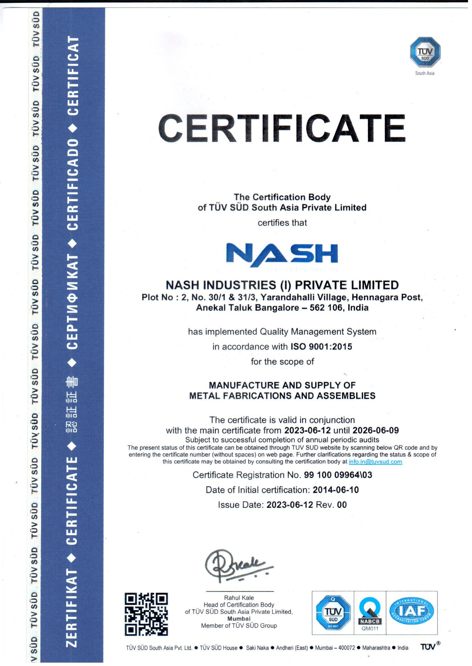 IATF 16949 certificate - Nash Pune plant